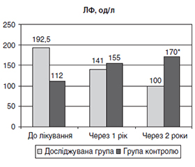 Background. Determination of peculiarities of the secondary hyperparathyroidism’s course (sHPT) and its treatment in patients with chronic kidney disease (CKD) G5D is an actual problem. The purpose was to study the effect of long-term therapy with the inclusion of the calcimimetic cinacalcet (LСT) on the course of sHPT in CKD G5D patients. Materials and methods. In the single-center cohort prospective study we examined 134 personss with CKD G5D, who received therapy by program hemodialysis. The study group included patients who received LСT and basic sHPT therapy with the use of vitamin D (alfacalcidol) and calcium-containing/synthetic phosphate-binder calcium acetate/sevelamer hydrochloride; the control group received long-term basic therapy. In all patients, levels of intact parathyroid hormone (iPTH), serum calcium (Ca), phosphorus (P) and alkaline phosphatase (ALP) activity were determined before treatment, after one and after two years of therapy. The data were analyzed using SPSS, version 21, with statistical significance set at p <0.05. Results. SHPT was detected in 33.6 % of patients, whose average age was 52.2 ± 12.9 years. LCT contributed to the achievement of the target level of iPTH in 83.3 % of patients with sHPT, which was accompanied by a significant decrease in the frequency of fractures and clinically significant vascular calcification. During LCT there was also significant decrease of P, Ca level and, to a lesser extent, ALP activity in patients with sHPT. Conclusion. During LCT of sHPT with cinacalcet, there was a significant decrease in the level of iPTH, which was accompanied by a decrease in the level of serum P, Ca and, to a lesser extent, ALP. Cinacalcet can be considered as a safe and effective tool in the treatment of sHPT in CKD G5D patients.