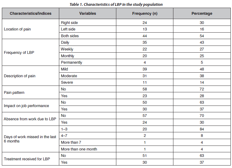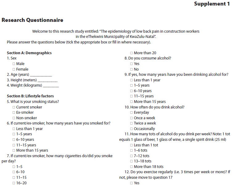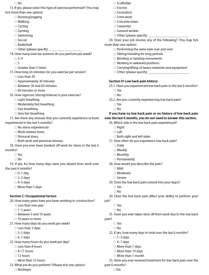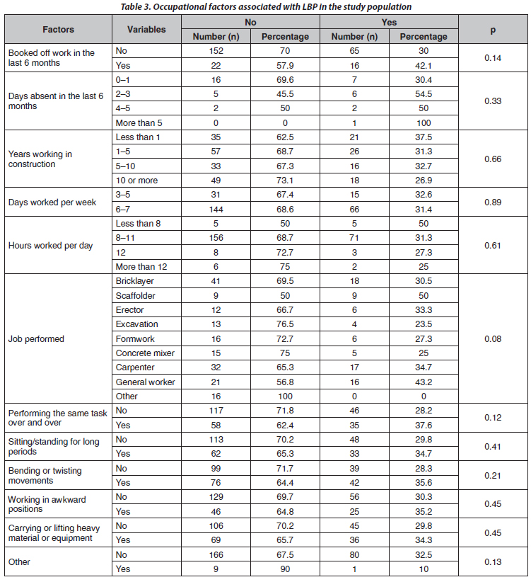 low back pain; construction workers; lifestyle; occupational factors; South Africa