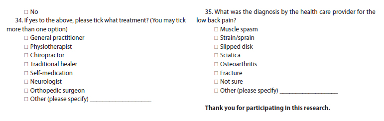 - Khumalo K, Haffejee F. Prevalence and associated risk factors of low back pain among users of a primary health care clinic serving semi-urban and rural settlements in KwaZulu-Natal, South Africa. Afr Health Sci. 2022 Jun;22(2):592-601. doi: 10.4314/ahs.v22i2.68.