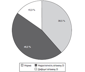 Актуальність. Робота присвячена вивченню мінеральної щільності кісткової тканини у неамбулантних підлітків з прогресуючою м’язовою дистрофією Дюшенна (ПМД Дюшенна). За даної патології відбувається деструкція м’язів, яка з часом призводить до повної втрати здатності рухатися і смерті. Патогенетичні механізми даного захворювання, тривале застосування глюкокортикоїдів та прогресуюча адинамія призводять до залучення у патологічний процес кісткової тканини, зокрема формування остеопенії та вторинного остеопорозу. Останній може стати причиною патологічних переломів кісток різної локалізації, отже, потребує профілактики, ранньої діагностики і лікування. Мета: дослідити стан мінеральної щільності кісткової тканини та частоту остеопорозу в неамбулантних пацієнтів з ПМД Дюшенна. Матеріали та методи. Обстежено 13 пацієнтів 11–18 років з ПМД Дюшенна з різних регіонів України. Із анамнезу захворювання з’ясовували, чи отримувала дитина глюкокортикоїди та в якій добовій дозі, чи застосовувалась саплементація препаратами вітаміну D і кальцію, чи були переломи кісток та їх локалізацію. Проводили антропометрію й оцінку росту та індексу маси тіла, консультування ендокринолога. Оцінка параметрів кісткової тканини проводилася за допомогою двофотонної рентгенівської денситометрії на апараті Hologic Discovery Wi. Сканування проводили на рівні поперекового відділу хребта, усього скелета, проксимального відділу правої стегнової кістки та шийки правої стегнової кістки. Визначали біохімічні показники крові: іонізований кальцій, 25(ОН) вітамін D і паратгормон. Результати. У 11 (84,6 %) пацієнтів показники мінеральної щільності кісткової тканини були нижчими за нормативні, в тому числі остеопороз зареєстровано у 5 (38,5 %) з них. Отримували лікування глюкокортикоїдами 69,2 % пацієнтів з середньою дозою 24,50 ± 5,38 мг/добу. Більшість хворих (61,5 %) мала нижчий від оптимальних значень рівень 25(ОН) вітаміну D. Висновки. Висока частота порушень стану мінеральної щільності кісткової тканини зумовлює необхідність регулярного проведення денситометрії та визначення рівня 25(ОН) вітаміну D у пацієнтів з ПМД Дюшенна, особливо якщо вони отримують глюкокортикоїди.