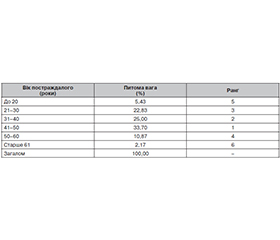 Актуальність. Дефекти довгих кісток (ДДК) є зазвичай наслідком високоенергетичної травми та мають тенденцію до поширення у постраждалих. Така патологія не тільки потребує довготривалого лікування, а й призводить до високого ризику інвалідизації постраждалого внаслідок як самого дефекту, так і можливої ампутації кінцівки. Матеріали та методи. Дослідження має когортний характер і базоване на вивченні й аналізі 92 випадків ДДК кінцівок, що виникли внаслідок бойових уражень під час воєнних дій на території України у період із 2022 по 2024 рік. Для аналізу результатів були застосовані: параметрична методологія статистики (ранговий аналіз) і непараметричні методи (поліхоричний аналіз), а також елементи фрактального аналізу. Результати. Встановлено, що найчастіше ДДК виникають у постраждалих вікової групи 41–50 років (33,70 %), найменше — у постраждалих старше 61 року (2,17 %). Загалом більшість постраждалих (81,53 %) становлять особи активного працездатного віку (21–50 років), що має важливе соціальне значення, оскільки ДДК мають великий ризик інвалідизації постраждалого. За клініко-анатомічним сегментом найчастіше ДДК у постраждалих виникають при пошкодженні нижніх кінцівок (86,96 %), причому ДДК гомілки становлять 67,39 %. Крім того, доведено, що існує вірогідна залежність виникнення ДДК за анатомічним сегментом у вікових групах. При аналізі показників дисипації за віковою ознакою та пошкодженим сегментом встановлено, що найбільший вплив на виникнення ДДК має вікова група 41–50 років та анатомічний сегмент «гомілка». Такий факт зумовлений як інволютивними змінами в організмі постраждалого, так і механізмом отримання пошкодження. Висновки. 1. Виникнення ДДК вірогідно залежить від вікової ознаки постраждалого та клініко-анатомічної ознаки пошкодження. 2. Найбільш часто ДДК виникають при пошкодженні гомілки і стегна й у віці 31–50 років, що відображає комбінований вплив інтенсивності ураження й інволютивного зменшення компенсаторних можливостей організму постраждалого. 3. Інтенсивність впливу вікових і клініко-анатомічних ознак є різною, причому найбільш інтенсивно впливають на виникнення ДДК ознака «гомілка» та вік 41–50 років. 4. Результати дослідження потребують подальшої клінічної інтерпретації з метою формування клініко-анатомічних, клініко-епідеміологічних і клінічних паралелей як основи для розробки клінічних протоколів і клінічних маршрутів пацієнта.